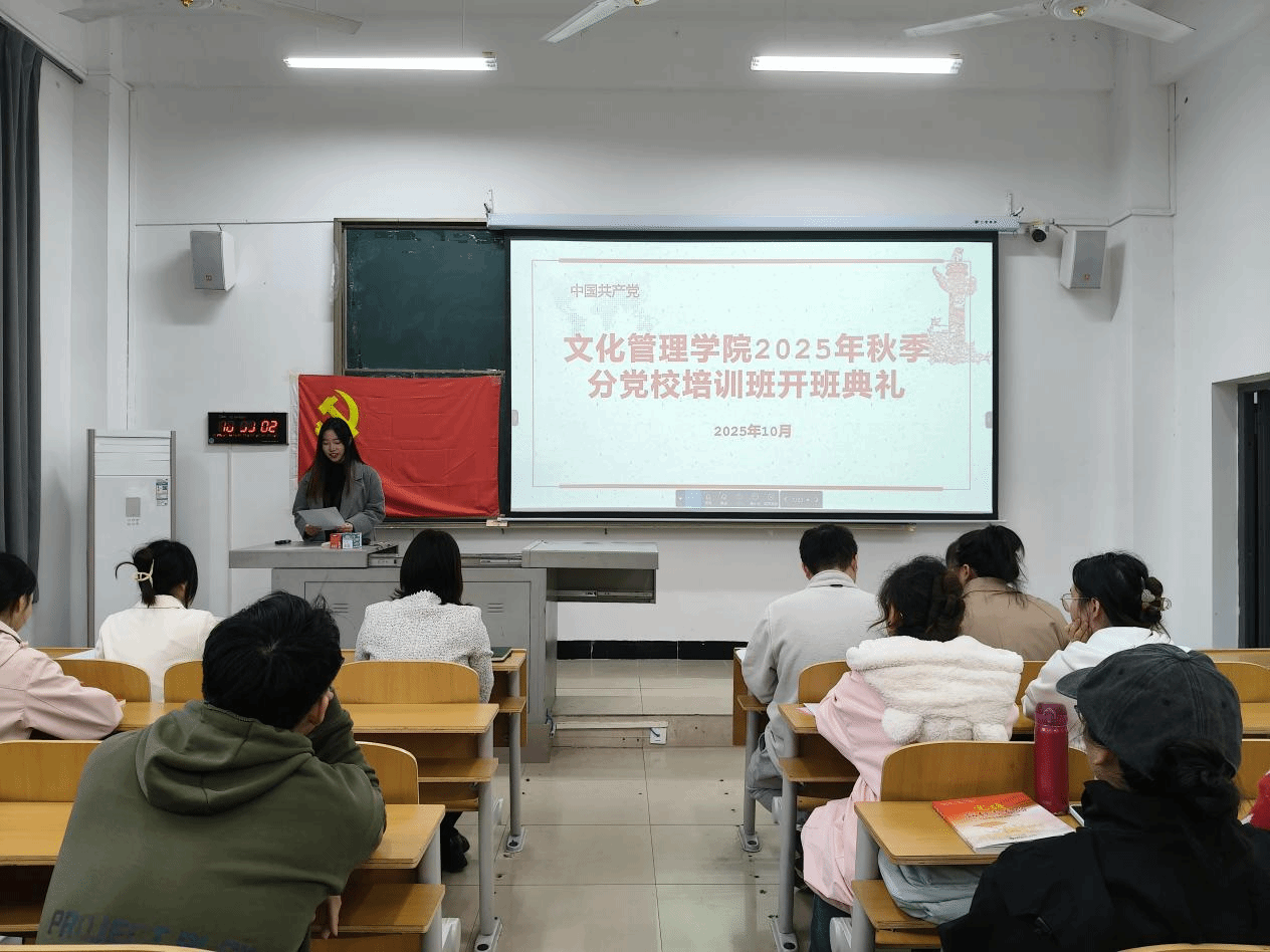 2025年10月21日17时,武汉传媒学院文化管理学院第43期分党校培训班开班式在五号楼5211教室举行。学院党总支副书记、分党校校长赵洲舟,学生第一党支部书记王喆,学生第二党支部书记袁知兰,党总支组织委员武思雨出席,全体学员参加。本期开班式以"强化理论学习,锤炼党性修养"为主题,旨在提升师生政治素养与服务意识,推动学院党建工作提质增效。