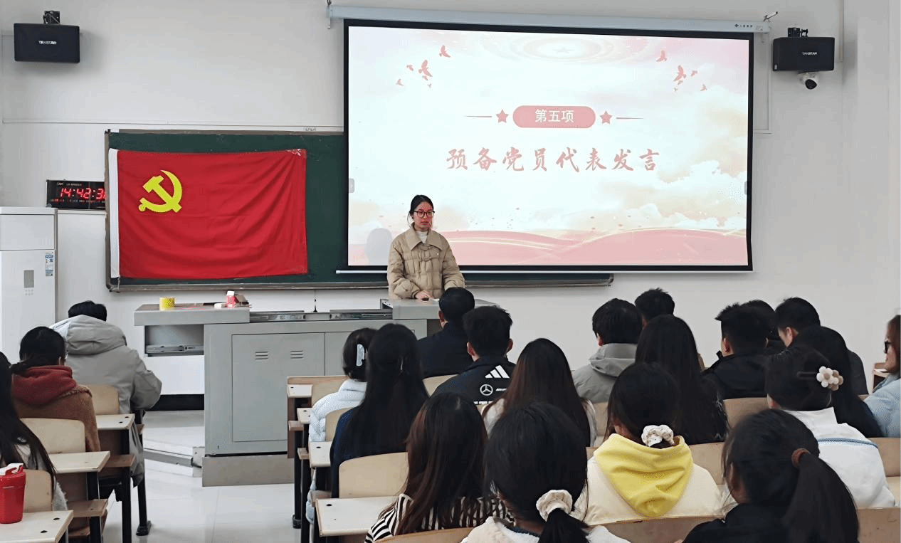 仪式上,党总支组织委员朱赫宣读了2025年下半年新发展党员名单。预备党员代表池鑫融作表态发言。
