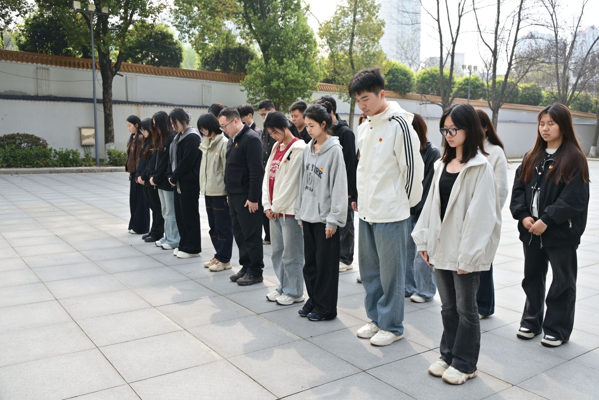 清晨,同学们在服务站老师们的带领下整装出发,统一乘车前往烈士陵园。大家怀着崇敬之心有序前行,奔赴一场跨越时空的追思之约。